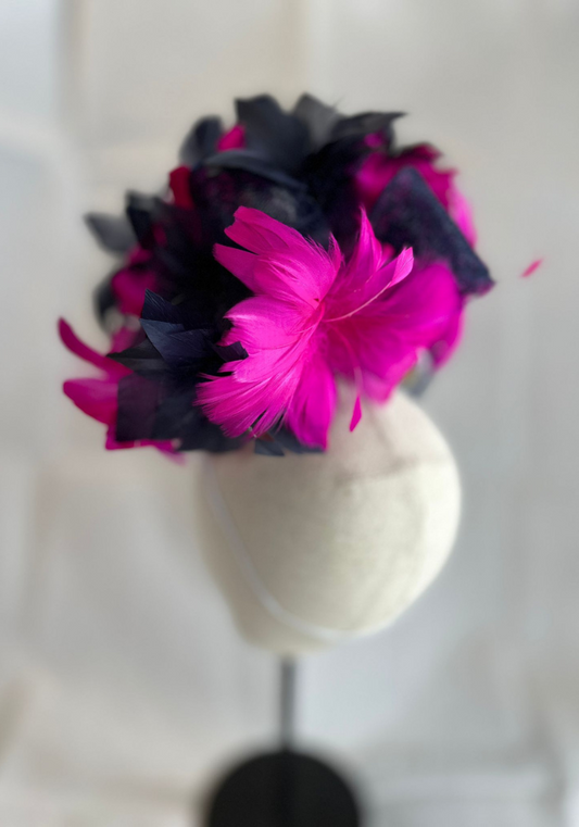 Navy Hatinator With Handmade Pink And Navy Feather Flowers